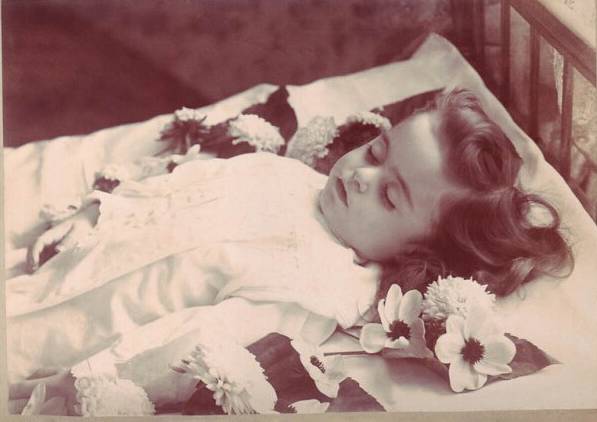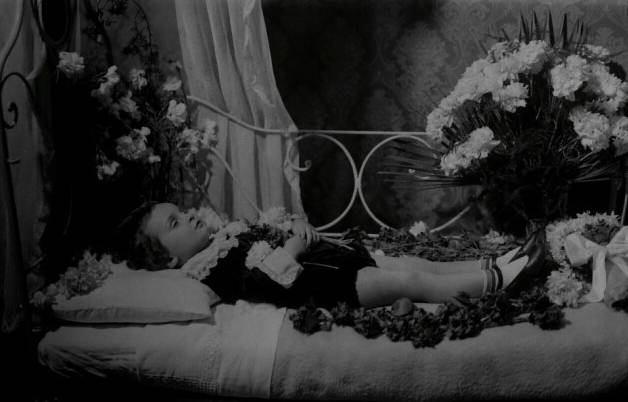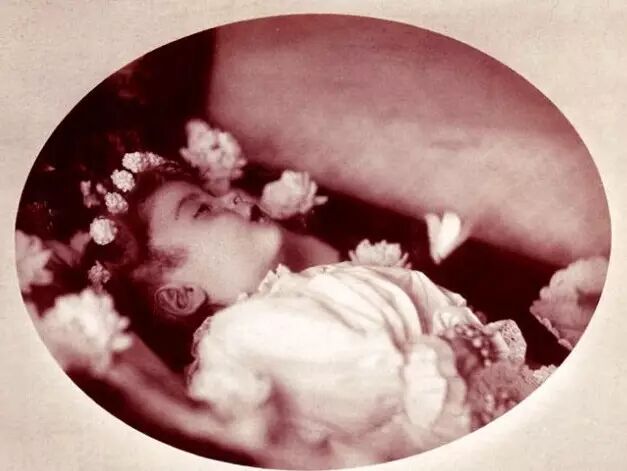 尤其是对于那些早年丧子的年轻夫妇来说,他们的孩子来世间惊鸿一撇便匆匆归天,一张死后的相片很可能就是留存后世的唯一纪念了。于是悲伤的父母把自己的爱子精心打扮,拍下他们在缀满鲜花的摇篮里安睡的最后容颜。