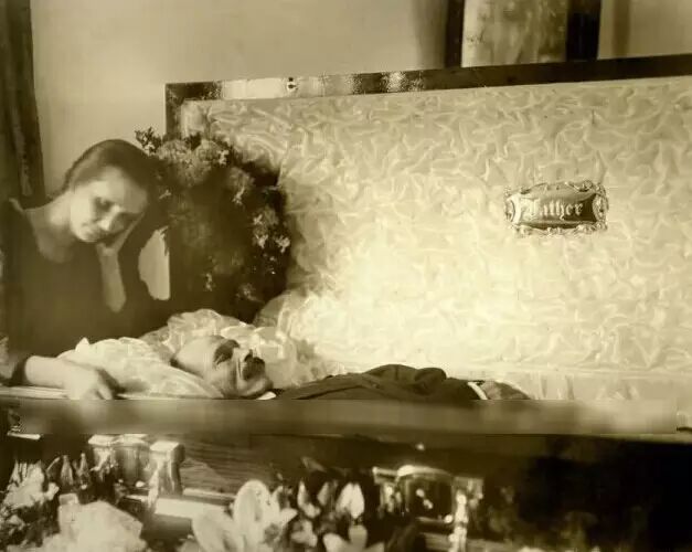 到19世纪末,遗体艺术摄影甚至成为时尚,对象也从早夭的幼童扩展到故去的成年人。为了达到栩栩如生的效果,摄影师还会为设法让他们摆出各种造型。甚至于,利用某种支撑,他们还能让死人睁眼,当然,这目光不会太友善。但是对于刚刚遭受了亲人离世打击的人们来说,这样已经弥足珍贵了。