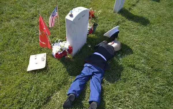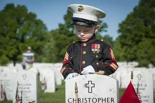 不管战争的目的是正义还是邪恶,失去的生命都无法再回来。几天前,在华盛顿举行的活动上,来自北卡罗莱纳州的4岁男孩雅各布(Christian Jacobs)穿著仿制海军陆战队的蓝色制服出现,此举是为了自己的父亲克里斯托弗(Christopher James Jacobs)。