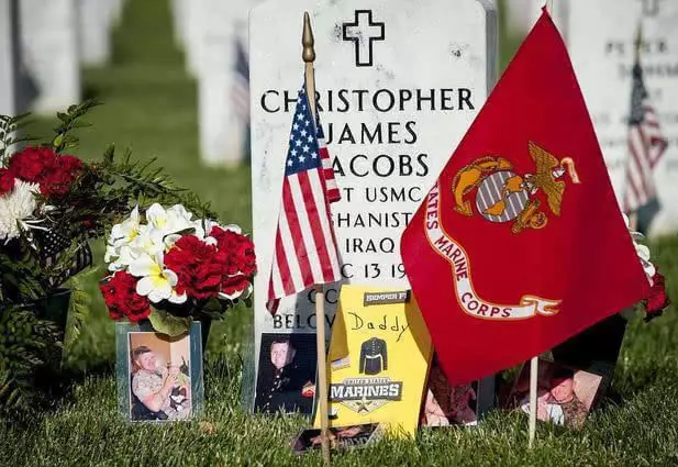 克里斯托弗被葬在阿灵顿国家公墓中,公墓60区安葬了许多在伊拉克和阿富汗战争中阵亡的军人。虽然雅各布懂事后没有见过自己的父亲,但是却对他有很深的感情。他非常喜欢来这里,并认为这是父亲休息的地方。这天,雅各布穿著仿制海军陆战队的服装,还配戴了父亲的勋章,对著父亲的墓碑说“我希望你赶快回来”。