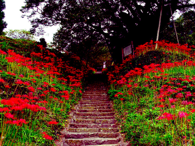 在黄泉路上有火红的彼岸花,远远看上去就像是血所铺成的地毯,又因其红的似火而被喻为”火照之路”也是这长长黄泉路上唯一的风景与色彩,人就踏着这花的指引通向幽冥之狱。 人的阳寿到了就会死,这是正常的死亡,正常死亡的人首先要过鬼门关,过了这一关人的魂魄就变成了鬼,另外,黄泉路上还有很多孤魂野鬼,他们是那些阳寿未尽而 非正常死亡的,他们即不能上天,也不能投胎,更不能到阴间,只能在黄泉路上游荡,等待阳寿到了后才能到阴间报到,听候阎罗王的发落。