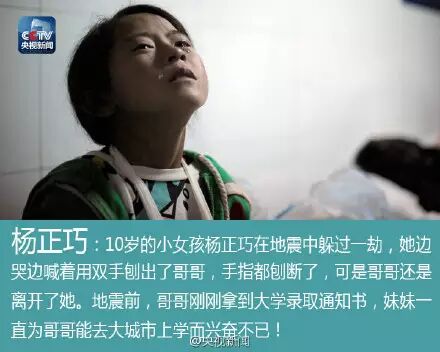 一年前,云南鲁甸6.5级地震,617人不幸遇难,112人失踪,3143人受伤?他叫谢樵,一名战士,24岁生命却消逝在堰塞湖;他失去8位亲人,却因救人没能回家看看;她是个10岁女孩,哭喊着用手刨出被埋的哥哥,手指都刨断?今天,再次向他们致敬!记住这些面孔!
